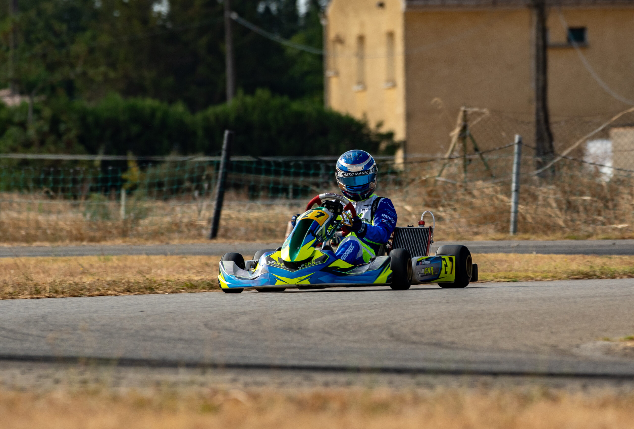 Sur deux saisons de compétitions en Occitanie, j’ai décroché une 2ème place au championnat pour la saison 2022 et une 4ème place pour la saison 2023. Suite à ces trois années d’entrainement et de compétitions, j’ai décidé de changer de catégorie et de m’orienter vers le plus haut niveau du karting : le Kz. Ce dernier possède un moteur 2 temps, 125cc développant jusqu’à 51 chevaux. Il a pour particularité une boîte de vitesses séquentielle avec 6 rapports. Je m’entraine dur et garde dans le viseur la victoire. Afin de performer, je me suis engagé au sein de l’équipe du Castellet Kart Racing en vue de courir dans divers championnats : club, ligue et France.